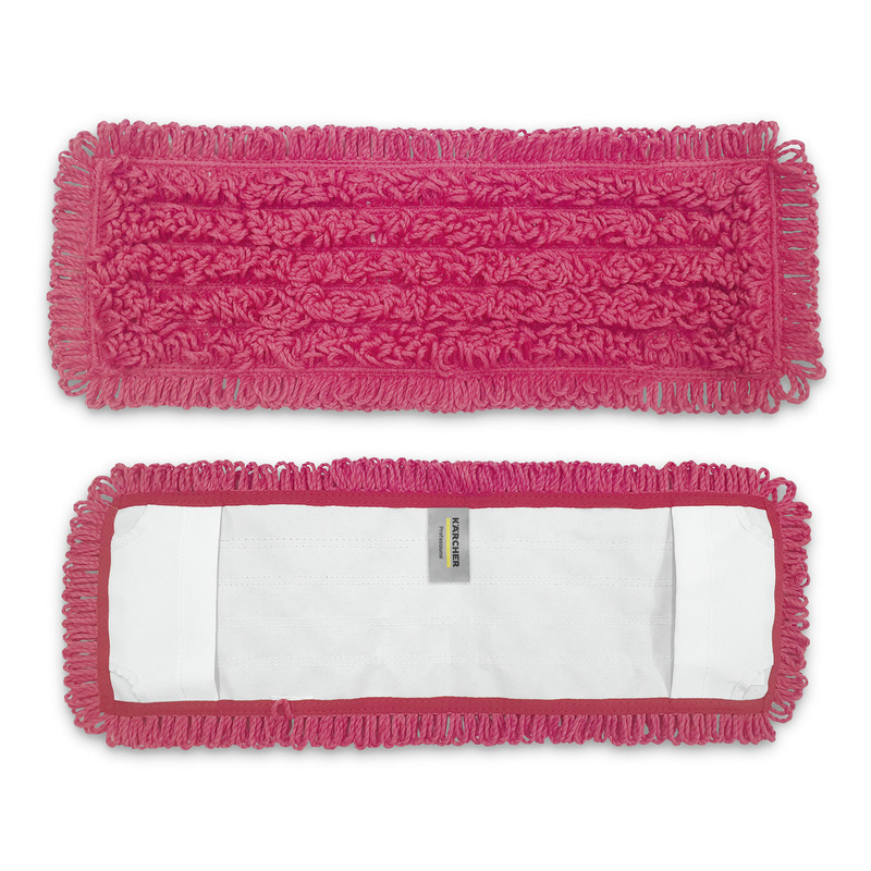 Комплект мопов ECO! красного цвета. С петлями из микроволокна и карманами для фиксации. Идеальное решение для работы по методу предварительного увлажнения мопов или в комбинации с предлагаемыми Kärcher инвентарем для работы с плоскими мопами.