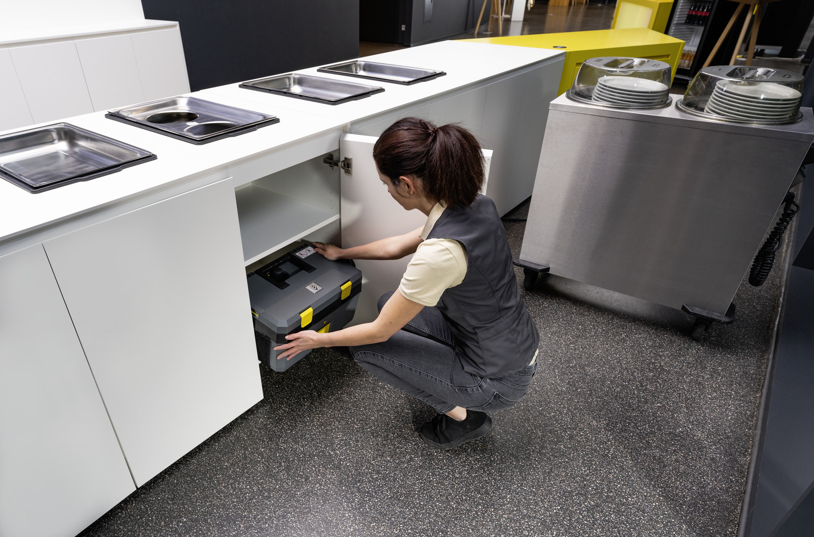 - Для уборки в местах с большим скоплением людей, например, для очистки буфетов, витрин, прилавков